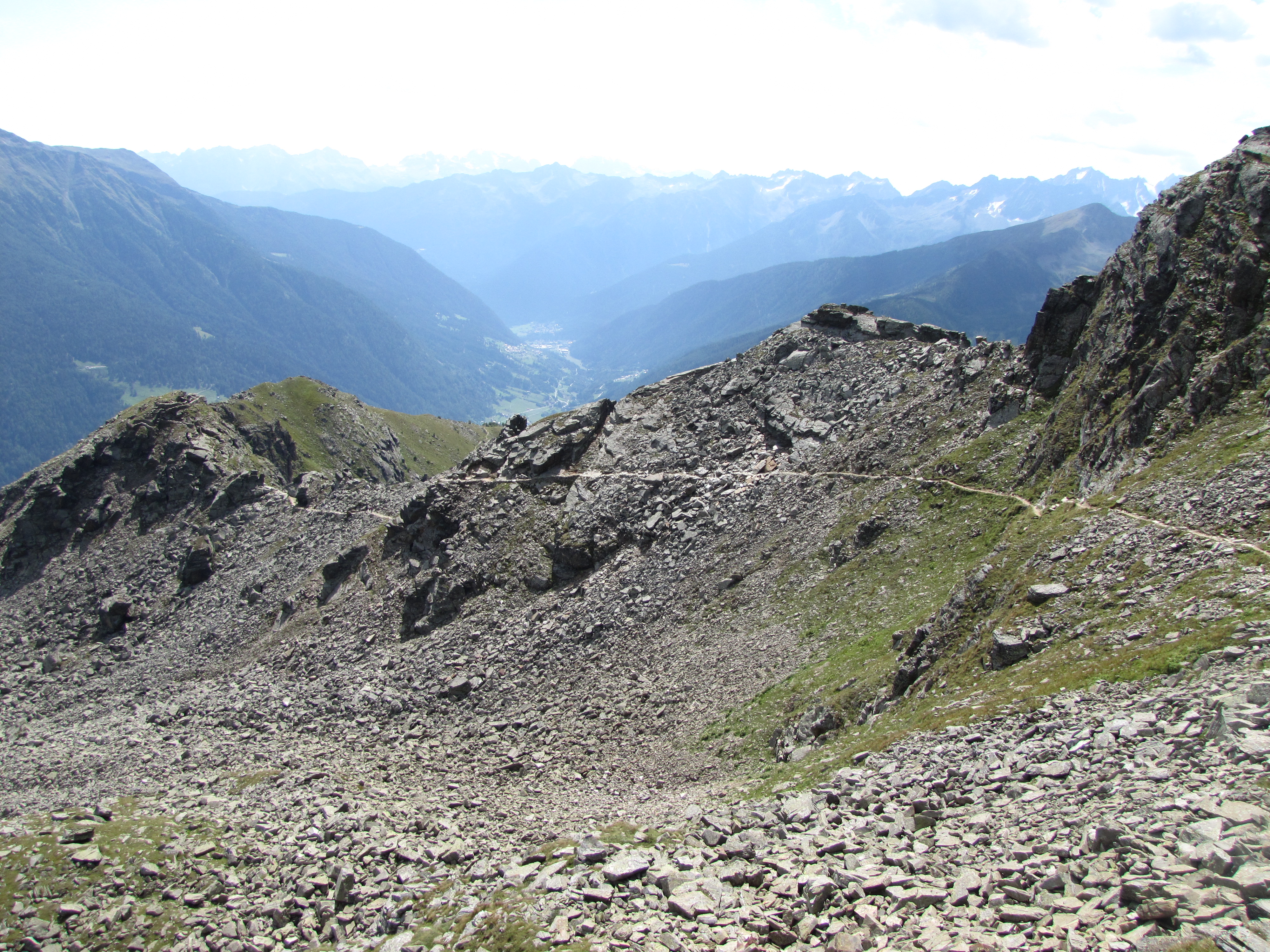 The most popular route to the summit is from the trailhead at Rifugio Doss dei Cembri at about 2200 meters and a 1400 meters climb from there. To get there, we took the cable car from the valley to Rifugio Scoiattolo and finally the chair lift to Rifugio Doss dei Cembri.