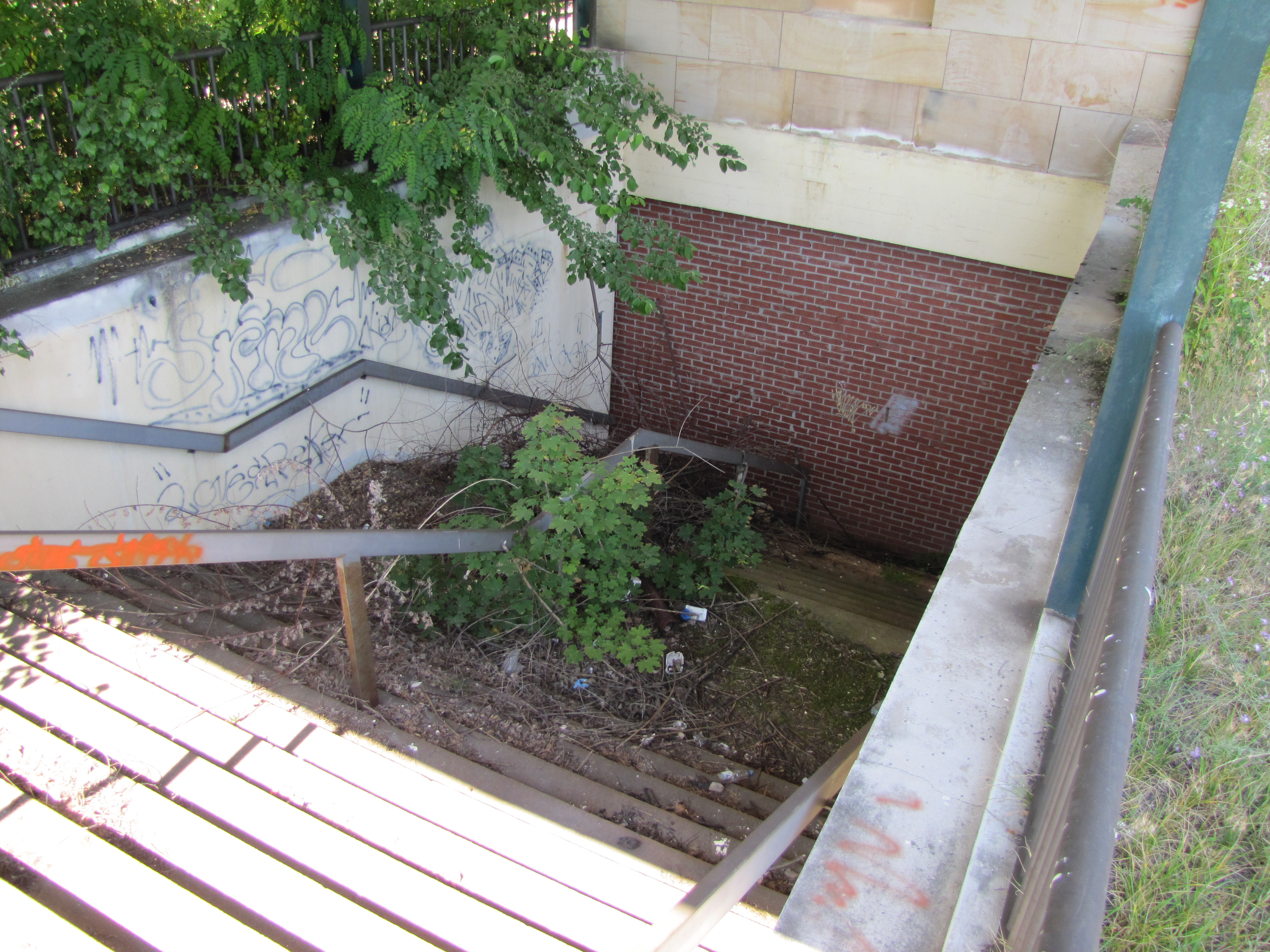 Im Juli 2013 besuchte ich das Gelände. Dabei entstanden Fotos von den Bahnsteigen, den Zugängen sowie vom Inneren des südlichen Tunnels.